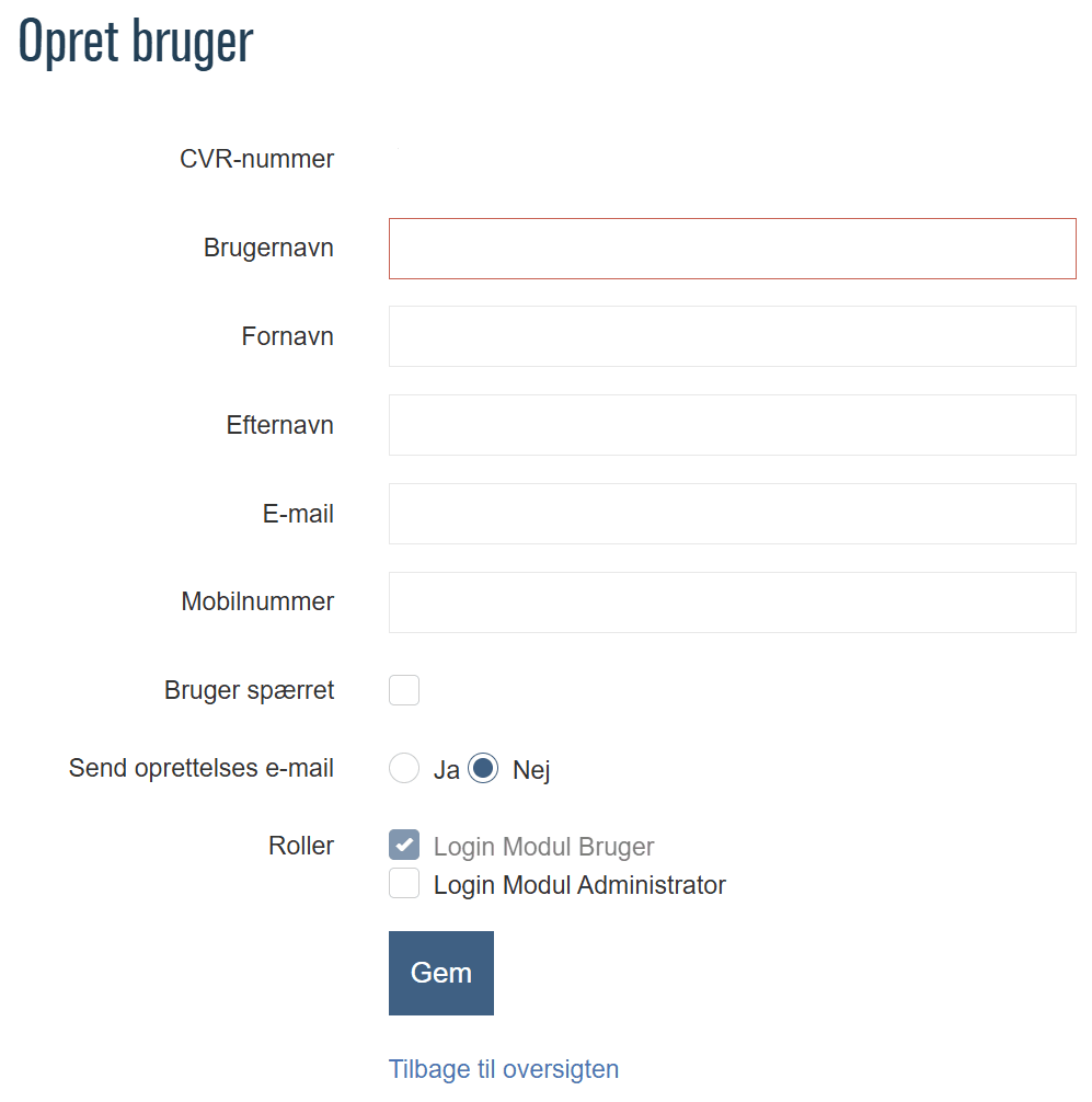 | Bruger spærret | Feltet anvendes ikke i forbindelse med oprettelsen |