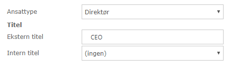 De fleste skærmbilleder i Intega HR har felter, der er forsynet med dropdown-menuer, som for eksempel ’Ansattype’ og ’Intern titel’ på fanebladet Ansættelse.