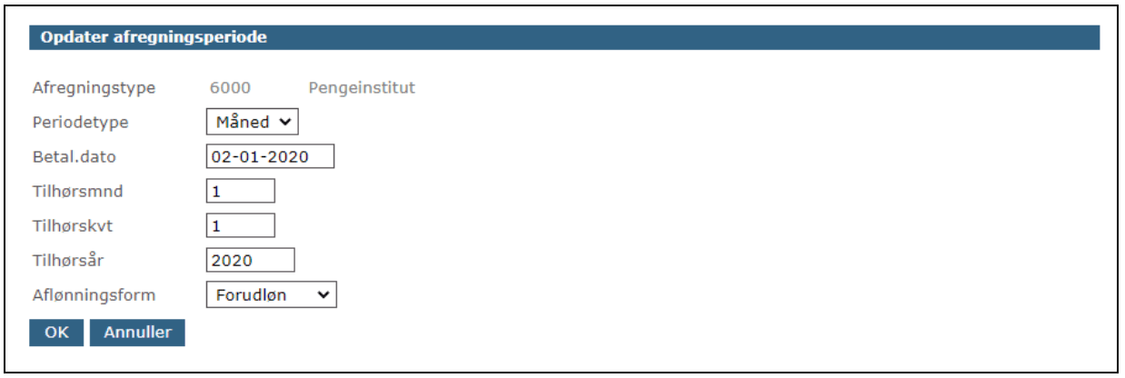 - Klik evt. på Annuller for at se tidligere års afregningsperioder